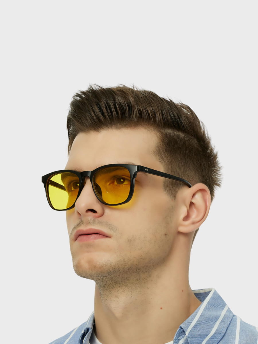 100% acetate frame. Rectangular design. Total UV protection factor with category 3 filter.