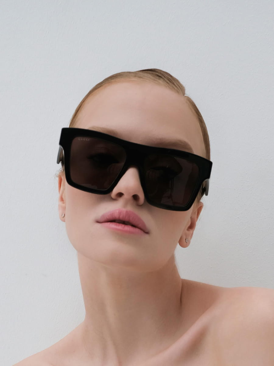 100% acetate frame. Rectangular design. Total UV protection factor with category 3 filter.