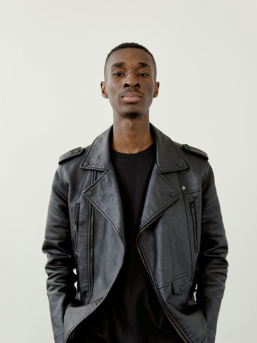 Leather jacket with pockets
