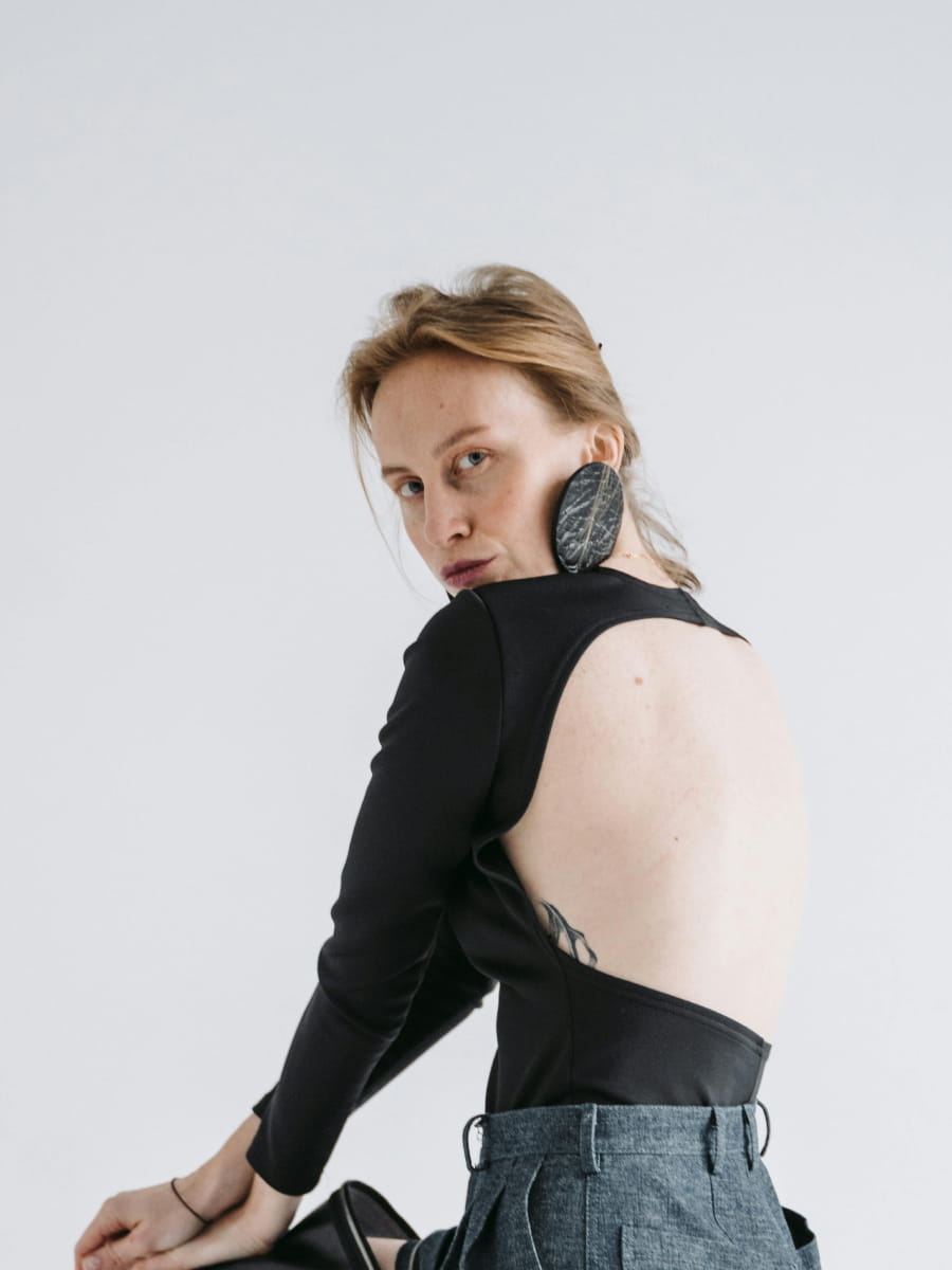- Textured leather circle earrin…