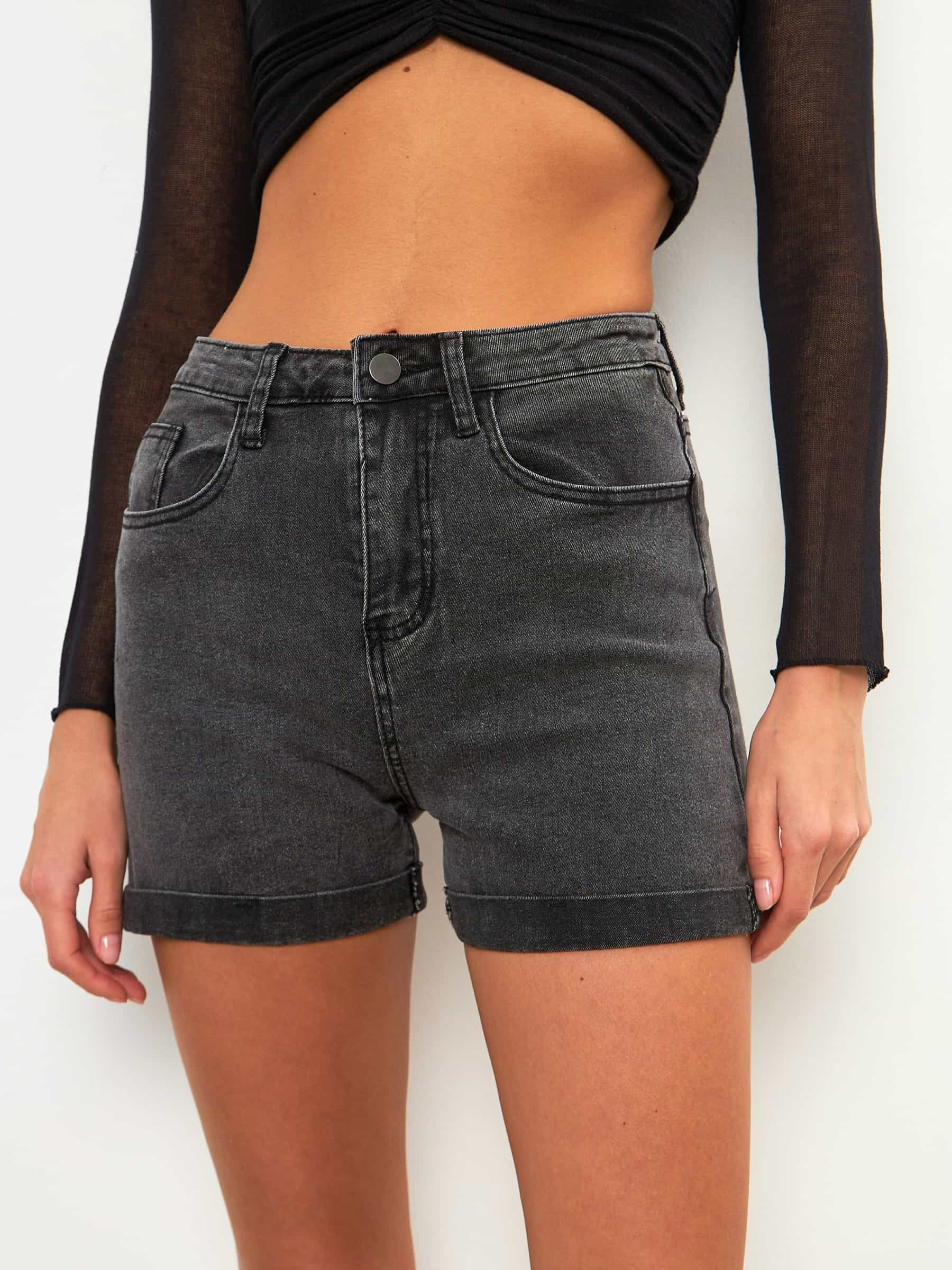 High-waist Bermuda shorts with five pockets. Turn-up hems. Front zip fly and metal top button fastening.